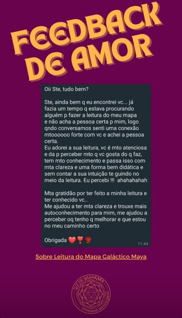 A leitura do Mapa Galáctico acontece ao vivo por vídeo chamada, onde irei compartilhar com você algumas imagens para você acompanhar enquanto eu faço a leitura.